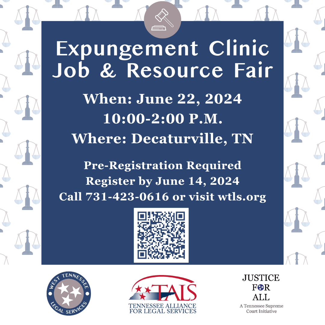 The Tennessee Justice Bus has partnered with the Tennessee Division of Rehabilitation Services/ Vocational Rehabilitation Program & West TN Legal Services to host an expungement eligibility clinic in Decatur County.