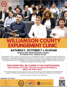 The TN Justice Bus is partnering with the Urban League of Middle Tennessee and Legal Aid Society of Middle Tennessee for an expungement clinic.