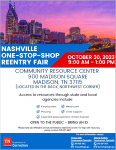 The Justice Bus is partnering with the TN Department of Correction and will be on-site at the Madison, TN Reentry Fair on October 30th.