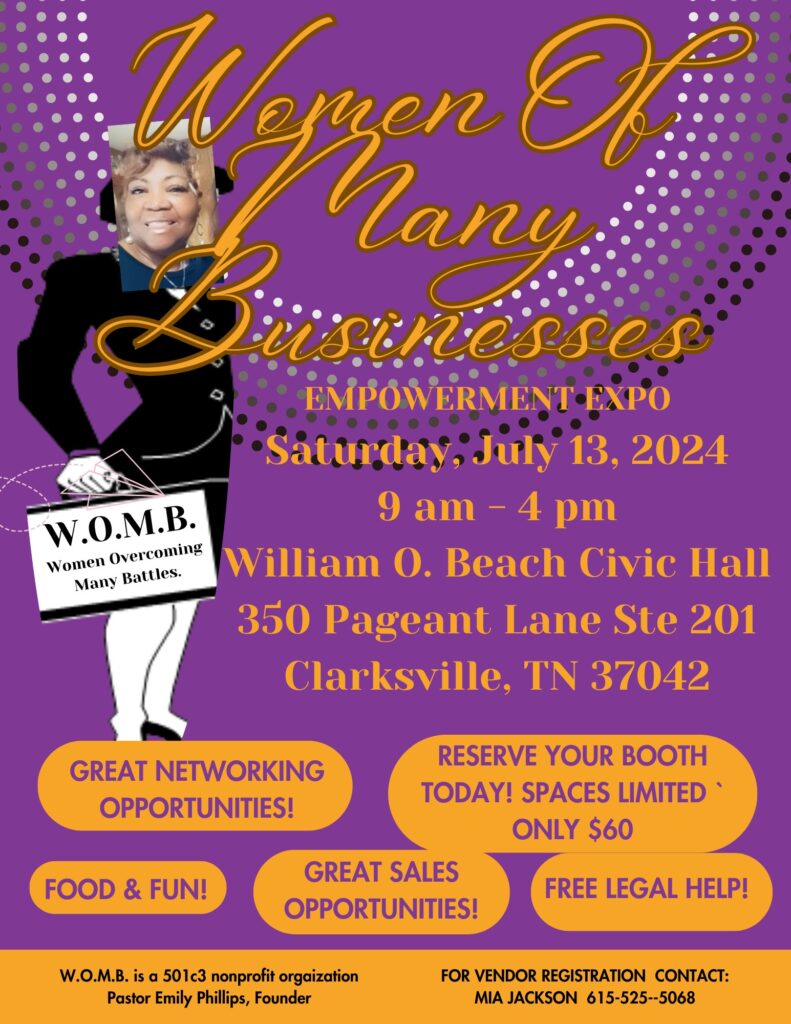 The Tennessee Justice Bus will be at the Women of Many Businesses Empowerment Expo in Clarksville to provide a General Legal Advice Clinic on site. Participants will have a chance to speak with an attorney, ask legal questions, and receive legal direction and discover legal resources for free.