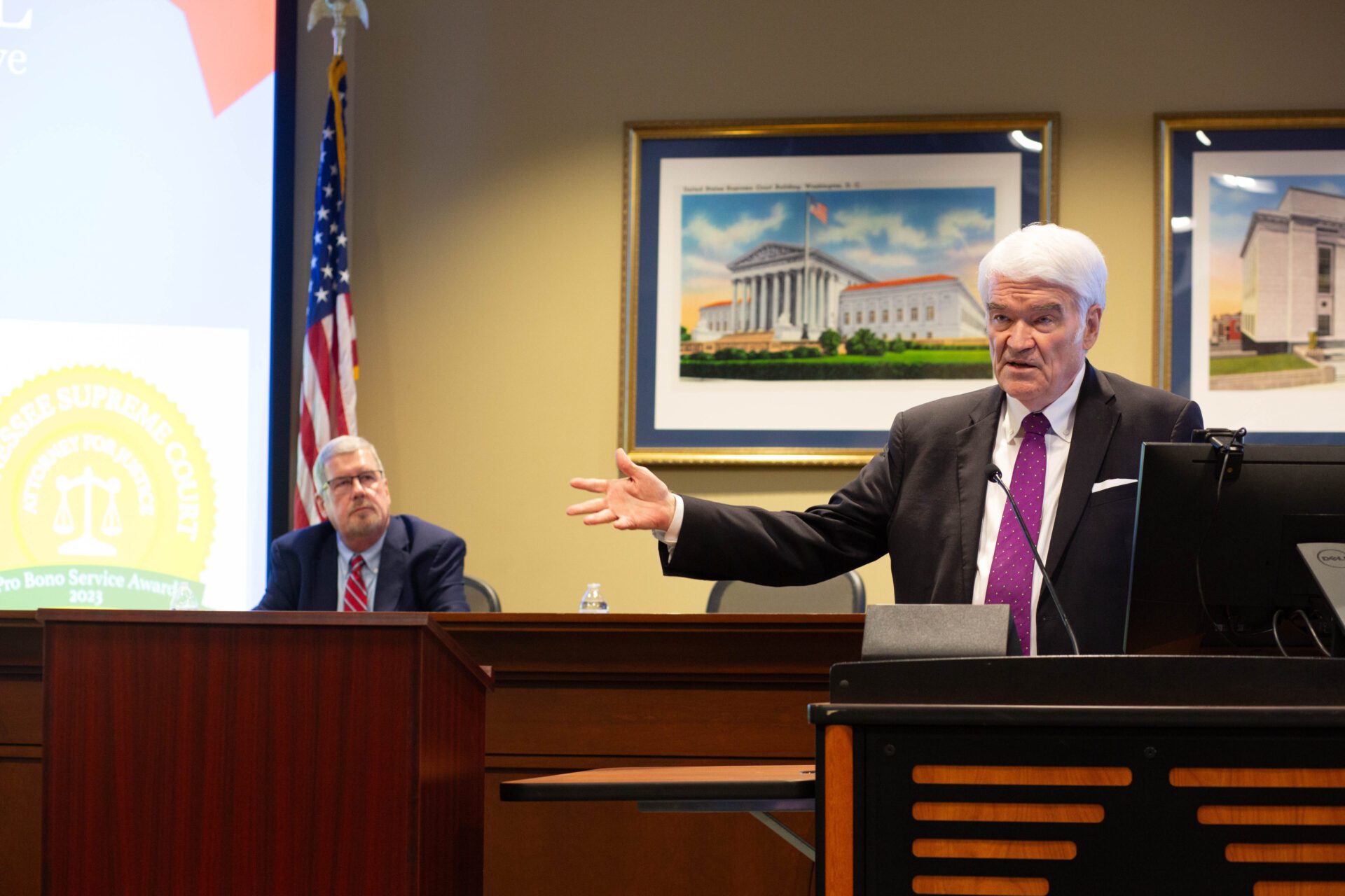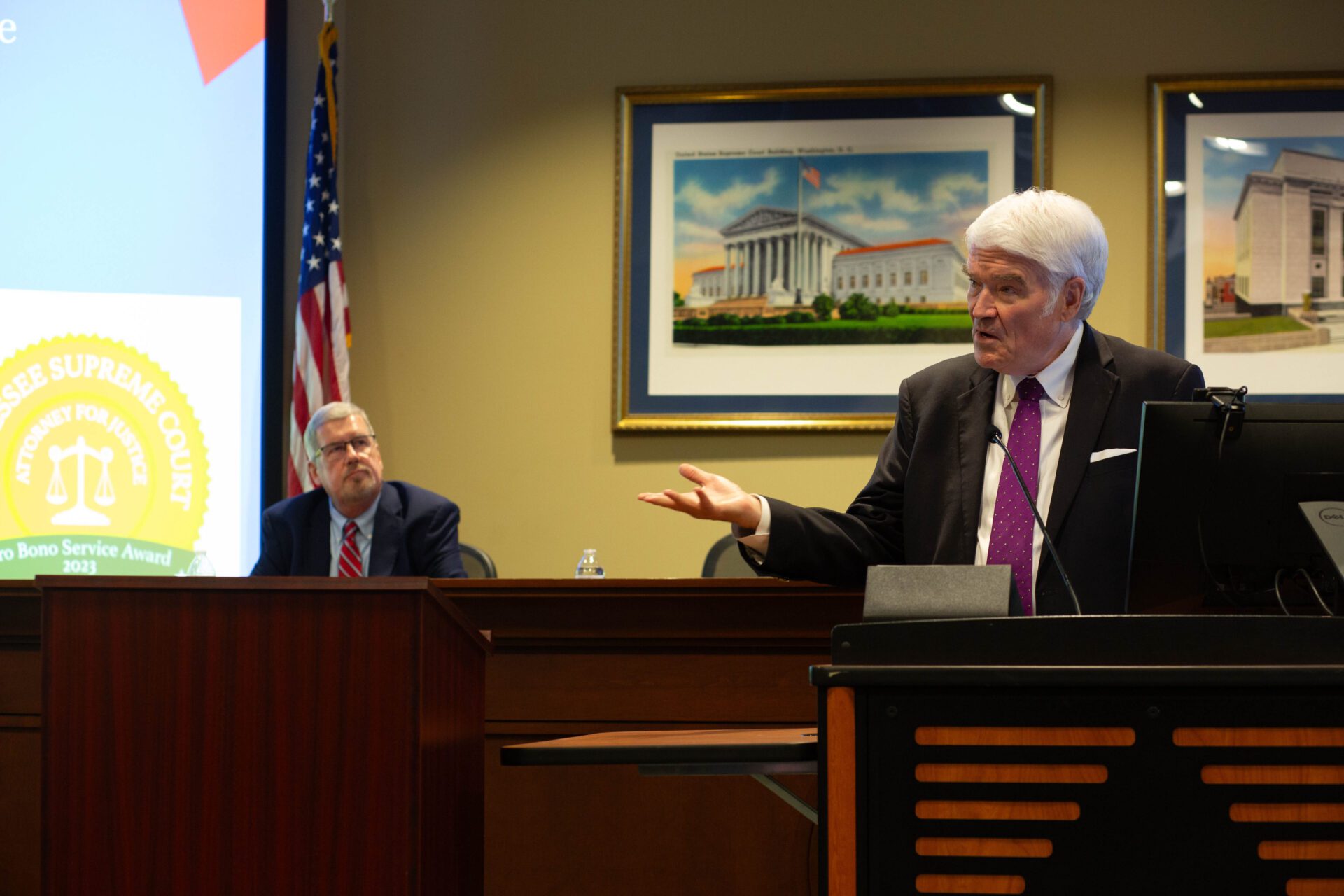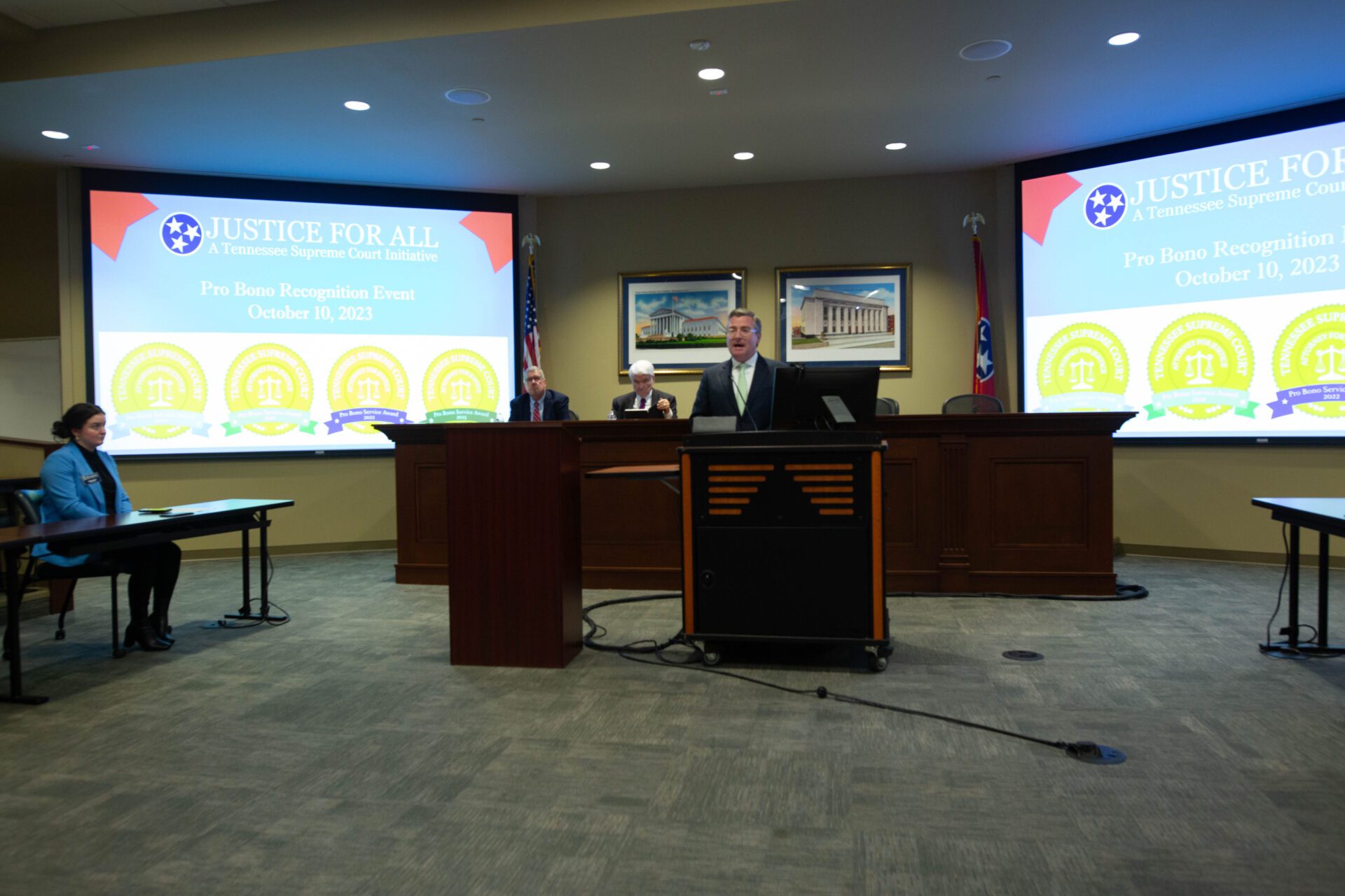 The TN Supreme Court and its Access to Justice Commission held the first in-person pro bono recognition ceremony since 2019 on Tuesday, October 10, 2023. The event took place at Belmont College of Law.